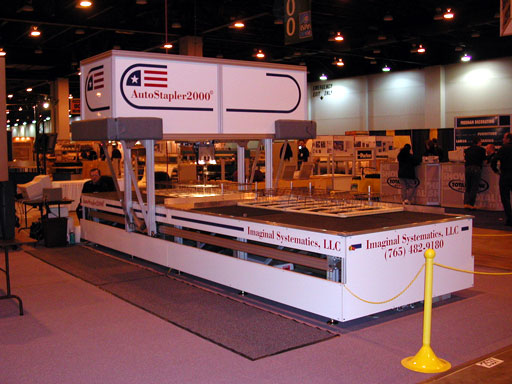 This product was designed in collaboration with Imaginal Systematics. It is a six axis, vision guided robotic stapling machine used to automate the current manual stapling process being used in the bedding industry.